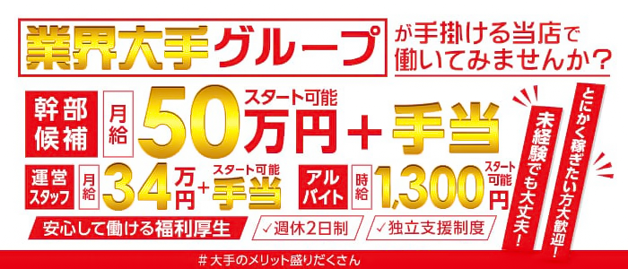 業界大手グループが手掛ける当店で働いてみませんか!?納得の高待遇!素直で元気な人間関係が出来る方ならOKです!